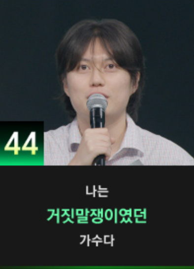 자기소개 이미지와는 달리 곡이 시작되자 첫소절부터 김광석 형을 불러왔습니다. 김광석 형과 비슷한 음색을 내거나 흉내 내는 가수들을 많았는데요. 44호의 음색은 눈을 감고 들으면 진짜 김광석 형의 목소리라고 착각할 수 있을 정도였네요.